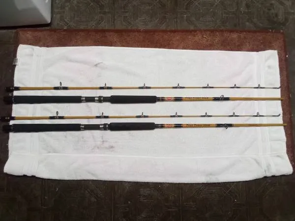 2 Penn Power Stick PD 3880 Downrigger fishing rods. These rods are 8 in length are medium action and are in very good condition, each rod has 10 eyes and they are rated for 3/8 to 1 oz. lures and 10-20 lb. test line. Get both rods for $60, call Steve @ 412-835-7029.