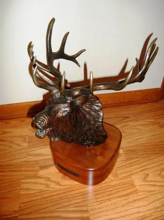 bronze statues including wildlife art and oriental art. all authentic not fake, all original casting not recast, many famous artists, many numbered limited editions, 816-229-6500 AFRICAN SABLE BRONZE STATUE African Sable signed by Dale W Byrd, sable standing among fallen limbs and rocks, sable 103/4 inch high x 6 inch wide, oval wood base 8 inch wide x 5 inch deep, number not legible, circa 1988, $1350 ALASKAN MOOSE BRONZE STATUE Bull Moose signed Carl Wagner, moose shoulder mount, ...
