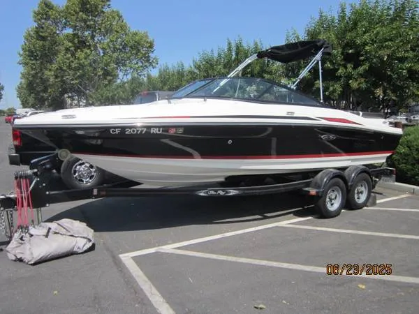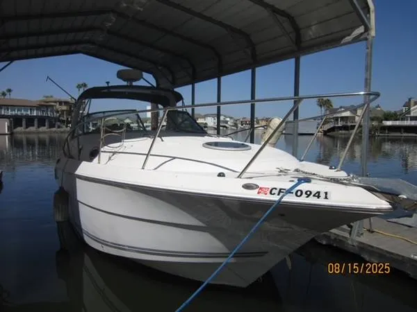Very nice mid cabin model with full sleeping eating and toilet facilities/ Walk thru windshield and transom door. 245 length and 86 beam on a tandem axle trailer. 10 person capacity Raised helm with full instruments including Mercury SmartCraft 5.0 Ltr Mercury engine with 320 hours Call Don Mann Yacht Sales to get more information 209-951-1141 NO TEXT