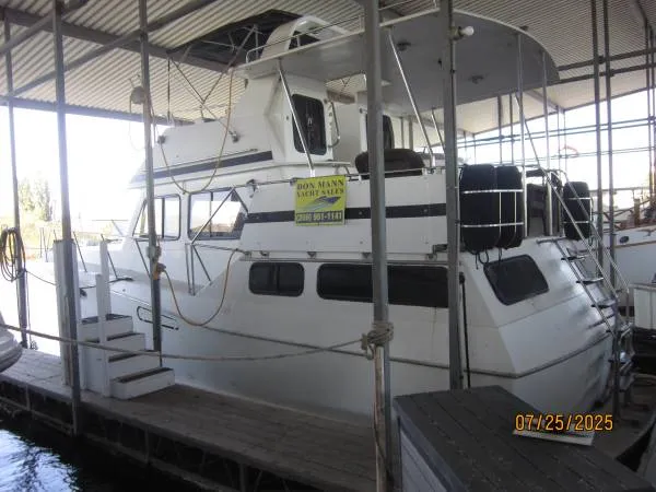 Mid cabin model with full head and galley with nice seating area Heat and air 4 Kw Kohler generator, 96 hours Twin Merc 5,7, 260 hp engines with 1242 hours Call Don Mann Yacht Sales for more information 209-951-1141, No text
