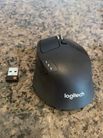 Logitech M720 Triathlon Multi-Device Wireless Mouse, Bluetooth, USB Unifying Receiver, 1000 DPI, 8 Buttons, Compatible with Laptop, PC, Mac, iPadOS - Black. Multi-Device Wireless Mouse: Move cursor, text, and files across multiple computers with Logitech FLOW; easily switch between up to 3 computers or laptops with the touch of a button. In excellent working condition. 15.00 Will not ship, Cash only, No trades. Call or text. Joseph 626.215.3226