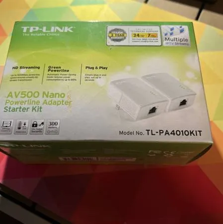 HomePlug AV standard compliant Miniature design, smaller than most powerline adapters at the market, blends discreetly in front of any power outlet. No new wires, Easy Plug and Play operation, No configuration required. TL-PA4010 provides users with stable and high-speed data transfer rates. Price is firm 25.00 Adapters are new in box. Will not ship, Cash only, No trades. Call or text. Joseph 626.215.3226