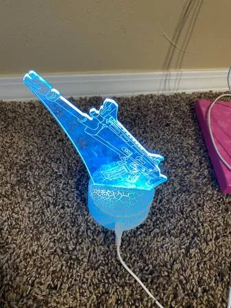Fortnite Character 3 D Optical Illusion Lamp + Scar. changeable colors, usb chargeable. used but still in good condition. asking $10 obo. Cash only please. Email or text if interested, 505-585-5453