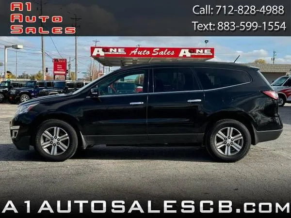 2017 Chevrolet Traverse LT AWD - $14,995 Year: 2017 Make:Chevrolet Model:Traverse Trim:LT AWD Mileage:102,588 Stock #:111662 VIN:1 GNKVGKD 7 HJ 111662 Trans:Automatic Color:BLACK Vehicle Type:SUV State:IA Drive Train:AWD Engine:3.6 L Notes Vehicle Options Backup Camera Cloth Seats Remote Start Front Fog Lights Daytime Running Lights SiriusXM Equipped Touch Screen Audio CD Player 4-Wheel ABS Latch System Child Seat Anchor Rear Parking Sensors Alarm Anti-Lockout Power locks Automatic Locking Power locks Hill Holder Control Stability Control Traction Control Compass Power Driver Seat Full Time AWD Remote Panic Alarm Remote Trunk Release 1-Touch Windows 12 v Cargo Area Power Outlets 12 v Front Power Outlets 12 v Rear Power Outlets OnStar Rear Spoiler Automatic On/Off Headlights Auxiliary Jack USB Audio Input Roadside Assistance Folding Side Mirror Power Side Mirror Heated Side Mirrors Integrated Side Mirror Turn Si Aluminum Alloy Wheels Power Windows Solar Tinted Glass Rear Defogger Cruise Control Remote Keyless Entry Bluetooth Pandora Bose Audio Subwoofer DVD Player Moonroof/Sunroof Heated Driver Seat Heated Passenger Seat Rear Moonroof/Sunroof Independent Rear A/C Cargo Floor Mat 115 v Power Outlets Garage Door Opener Block Heater Trailer Hitch Surround Sound Video Display Running Boards DVD Audio A 1 Auto Sales A 1 Auto Sales 1115 Veterans Memorial Hwy Council Bluffs IA 51501 712-828-4988 BatchID: 3 ULL 4 DX 3 F 4 ID: 21899245