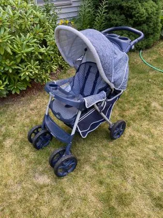 Stroller-GRACO Metro-Lite model. Lightw 8 but sturdy. Folds down for storage or transport. With large all-terrain wheels, anti-roll brake, under seat storage basket, shade bonnet, padded arms, safety straps, flip open front tray, cup holders, adjustable h 8 push handle. Cash or charge only. 269-455-9192 Delivery available for a nominal fee.