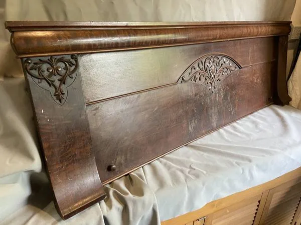 Upright Piano-FRONT PANEL only. Dark wood finish with beautiful embellishments......... what could you make this intoheadboard, mantle, etc??? Size: 58.5 x 19.25. Cash or charge only. 269-455-9192 Delivery available for a nominal fee.