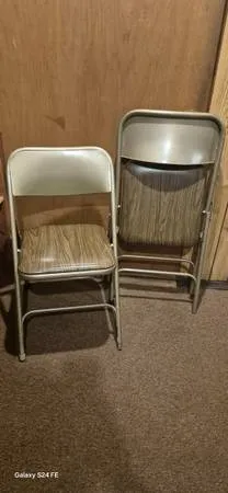 Folding metal chairs with cushi 1 d seats. Excellent condition. Sell for $100 plus for set of 4. Asking only $15 for the pair. Call or text 508-809-0659