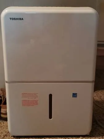 Like new (no faults, blemishes or problems with functionality) Toshiba 50pint Dehumidifier Model # TDDP5013ES2 Used for 6 months until I moved and no longer have a need to use it. The Toshiba 50-Pint per day dehumidifier helps to protect your home environment from humidity by removing a considerable quantity of moisture with the option of steady, continuous operation. With the easy-to-use control panel, you can setup the desired humidity level while the unit runs either automatically or manually. The unit is ENERGY STAR certified and can save energy even in humid environments. This unit is easy to carry around, light, and mobile with a 4-wheel design for better room-to-room portability and can run for a preset amount of time with its easy timer control. The clean filter and container full warnings let you know when to clean the filter or empty the water container for optimal performance. Compact design with 4-wheels makes this dehumidifier easy to move from room-to-room 24-hour programmable timer allows you to choose when the unit will power on and off When the dehumidifier is full, the container full warning will let you know it is time to empty the unit Automatic or manual humidity setup ENERGY STAR MOST EFFICIENT 2023 $130 OBO *CASH ONLY *SERIOUS INQUIRIES ONLY