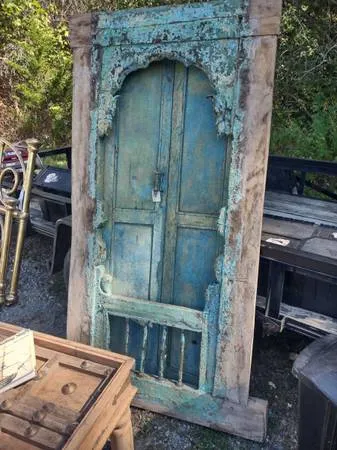 antique hardwood door with metal shutters style measures just over 6 ft tall widest point 36 in 845-702-8385