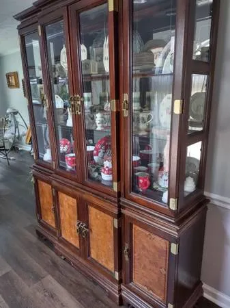 $75.00 or best offer Elegant wooden china cabinet with glass doors and brass hardware. Cash and carry/pick up only, bring help, heavy If post is up its available so please dont ask that question. Cash only, first come, first serve. Call us @ 770-779-9088 then press # when prompted. Since this is a land line it can not receive any texts. Please leave message if no answer. Thanks
