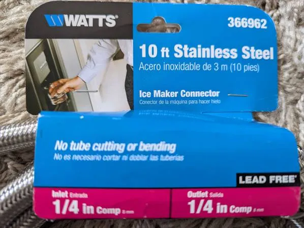 New 10 ft stainless steel ice maker connector line. Great deal at 15.00. No holds. No scammers please. Call or text to 717-253-1378.