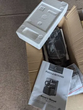 Never out of the box. New Emeril Lagasse pasta and beyond. Does 4 different things. Look at all the pics for details. Cost over 200.00 at box stores. Great deal at 100.00. Look it up. Call or text to 717-253-1378. No holds. No scammers please.