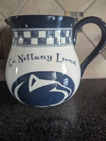 New, never used. Big porcelain Penn State watering pitcher. Great collectors piece. 30.00. No holds. No scammers please. Call or text to 717-253-1378.