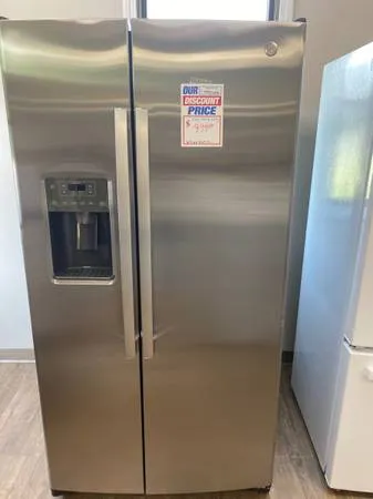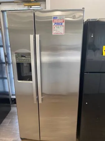 GE 25.1 cubic full depth Sude by Side refrigerator Stainless Steel Water & Ice on the door 36 wide M/N: GSSGYPFD Retail: $ 1999.00 Our Price: $ 999.00 Full Manufacturers Warranty Visit our showroom for more discounted appliances. D&L Appliance Corp 494 West St, Rt 106 East Bridgewater, MA 02333 508-583-0300 www.dandlappliance.com