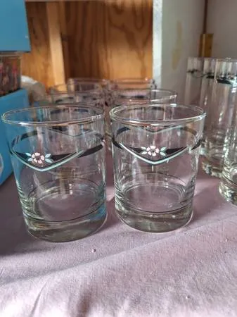 Drinking Glasses. Corelle, Corning, Zenith pattern, from the Breakfast collection. 8 Lo balls, 4 inches tall, 7 High Balls, 6 tall. Excellent conditon. Cash only, pickup only in Robbinsdale. MN. Give me a call, 763-535-6662, landline. If you choose to message me and I will send you my landline phone number. Please call with all questions. NO ENDLESS EMAILS code word: schmedlapp