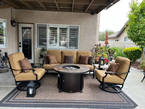 Set is still available if posted. All high quality patio furniture. All beautiful like new condition. Price includes.. Sofa, 2 swivel rockers, st 1 coffee table and st 1 top end table. All 5 inch Sunbrella cushions. Please note: I have 2 identical of the above sets. All same collection. Delivery available 42 inch round OW Lee Fire pit sold separately for $1700. Fire glass included. When you are ready to purchase…….then call 714-904-1573. 😁 No emails, no shoppers, no scammers. Message me when ready to pickup or schedule delivery.