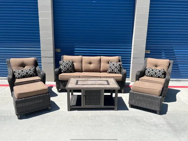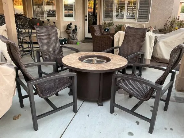 High end commercial patio furniture Tropit 1 brand 4 Tropit 1 Lakside collection Club chairs. Original cost is $1500 each. All like new condition. Fire pit is already sold. I do have other 50 inch rectangular for sale for $1700. Delivery available Serious buyers only call 714-904-1573.