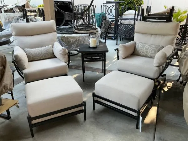 All new condition. 2 Motion over sized club rockers 2 foot stool ottomans 1 side table Delivery available When your ready to purchase….. then call 714-904-1573.