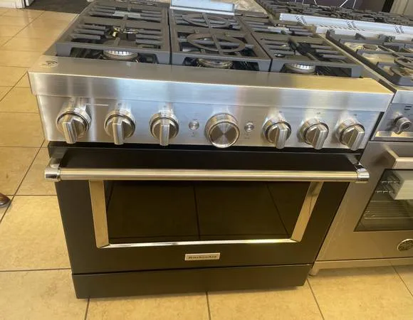 No dents no scratches mint condition serious buyers please text only at 480-729-2641 see my adds I have more stuff for sale thanks habló español KitchenAid® 36 Imperial Black Smart Commercial-Style Gas Range View more by KitchenAid Model #: KFGC 506 JBK