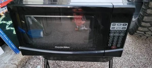 Black Proctor Silex Counter Top Micrwave 700 Watt. 173/4 wide 121/2 deep 101/4 high. Rotating Glass Dish. $35 Calls Only 314-477-5061