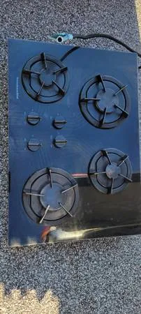 Black Kitchenaid Gas Cooktop. 4 Burner Glass Surround. Rough Opening 26 wide x 181/2 depth x 31/4 Deep. Outside Dimensions 303/4 wide x 213/4 depth x 31/4 deep. Flex Gas Line Included. $150 Calls Only 314-477-5061