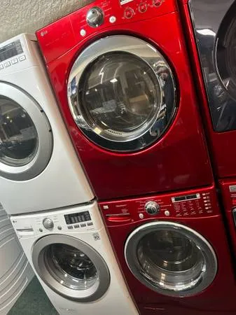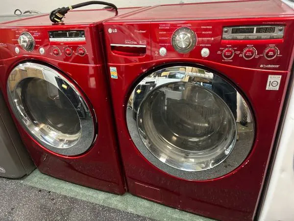 Washer and dryer set made by LG ruby red in a great condition. Very nice color has pedestal drawers or it can be stuck or stacked side-by-side. Extremely nice working condition comes with 1 year warranty. I could deliver it for additional. My phone number is 386-693-0891 or 6893237327