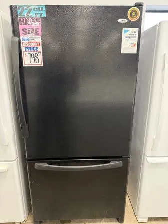 “RARE SIZE” AMANA 2 DOOR BOTTOM FREEZER REFRIGERATOR, 4 YEAR WARRANTY, WIDTH 33, ICE MAKER IN BOTTOM FREEZER, SPILL PROOF SHELVES, LED LIGHTS, MADE BY WHIRLPOOL, BLACK IN COLOR, EXCELLENT CONDITION, SUPER CLEAN INSIDE AND OUT, SALE ENDS DECEMBER 31, 2025. CHOOSE FROM OVER 200 NEW AND USED APPLIANCES INCLUDING 🔴REFRIGERATORS 🔴FREEZERSCHEST AND UPRIGHT 🔴WASHER AND DRYER SETS 🔴TOP LOAD WASHERS 🔴FRONT LOAD WASHERS 🔴GAS DRYERS 🔴ELECTRIC DRYERS 🔴TRASH COMPACTORS 🔴DISHWASHERS 🔴STOVES 🔴MICROWAVES 🔴WALL OVENS 🔴COOK TOPS AND MUCH MORE 🔴SALES TAX INCLUDED 🚚FREE SAME DAY DELIVERYON ALL APPLIANCES SOLD $495.00 OR MORE 🔴*4 YEAR WARRANTY 10 OFF US VETERANS AND/OR SENIORS 55 AND OVERMUST ASK/SHOW PROOF APPLIANCES PLUS MORE 2800 CHILDRESS DR. ANDERSON, CA. OPEN 7 DAYS A WEEK 8 A.M. - 4 P.M. SUNDAY 8 A.M. - 12 P.M. STORE 530-365-0669 NATHAN 530638-5284 *$99 DEDUCTIBLE PAID BY THE CUSTOMER PER APPLIANCE REPAIR PER CLAIM