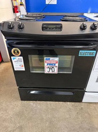FRIGIDAIRE 30 SLIDE-IN ELECTRIC COIL STOVE, 4 YEAR WARRANTY, SELF CLEANING, FBLACK IN COLOR, EXCELLENT CONDITION, SUPER CLEAN INSIDE AND OUT, SALE ENDS DECEMBER 31, 2025. CHOOSE FROM OVER 200 NEW AND USED APPLIANCES INCLUDING 🔴REFRIGERATORS 🔴FREEZERSCHEST AND UPRIGHT 🔴WASHER AND DRYER SETS 🔴TOP LOAD WASHERS 🔴FRONT LOAD WASHERS 🔴GAS DRYERS 🔴ELECTRIC DRYERS 🔴TRASH COMPACTORS 🔴DISHWASHERS 🔴STOVES 🔴MICROWAVES 🔴WALL OVENS 🔴COOK TOPS AND MUCH MORE 🔴SALES TAX INCLUDED 🚚FREE SAME DAY DELIVERYON ALL APPLIANCES SOLD $495.00 OR MORE 🔴*4 YEAR WARRANTY 10 OFF US VETERANS AND/OR SENIORS 55 AND OVERMUST ASK/SHOW PROOF APPLIANCES PLUS MORE 2800 CHILDRESS DR. ANDERSON, CA. OPEN 7 DAYS A WEEK 8 A.M. - 4 P.M. SUNDAY 8 A.M. - 12 P.M. STORE 530-365-0669 NATHAN 530638-5284 *$99 DEDUCTIBLE PAID BY THE CUSTOMER PER APPLIANCE REPAIR PER CLAIM
