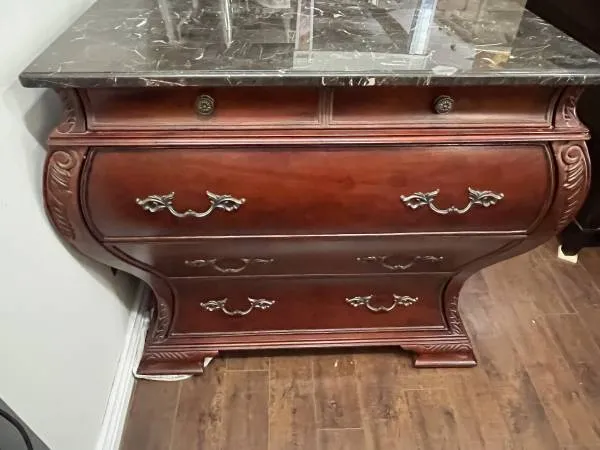 Decorative dresser in great shape. Has classy red flannel lining inside drawers. 40 wide x 35 tall x 19 deep. 3 large drawers plus 1 thin top drawer. $275. Can deliver nearby for an extra fee. Mid City LA near Fairfax and Pico Streets. Contact outdoorslew at gee male or call 310-770-7962.