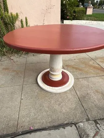 Solid wood dining table in a cool color that will brighten any room! 48 wide x 32 tall. $220. Can deliver nearby for a fee. Mid City LA near Fairfax and Pico Streets, 90019. Contact outdoorslew at gee male or call 310-770-7962. Click on “More ads by this user to view all my lovely furniture.