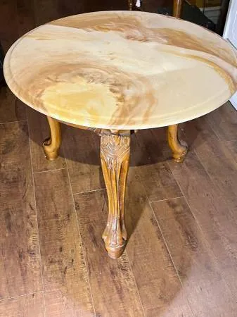 Elegant small end table with classy multi-color marble top made in Italy. 19 high x 25 wide. $95. Top comes off for easy transport. Mid City LA near Fairfax and Pico Streets, 90019. Contact outdoorslew at gee male or call 310-770-7962. Click on “More ads by this user to view all my high-quality