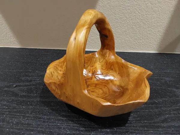 Hand Crafted Wooden Basket Dish.9 h x 10 wNo texting. Please call 520-395-6692. Leave Name and Number.