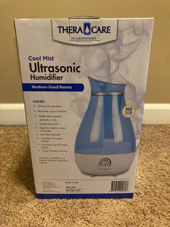 TheraCare Cool Mist Ultrasonic Humidifier. Brand New, Unopened Box. Text 309-360-9545 for pickup in Chillicothe. $30 obo.