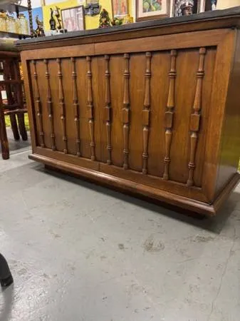 Lawrence Antique Mall - Booth 15 - any questions call Bill 785-221-2643 Offering a solid walnut - slate top - bar/buffet [HERITAGE] - in really good condition [see pictures] and priced to sell [$179.00 - It measures 44 x 17 x 28 tall