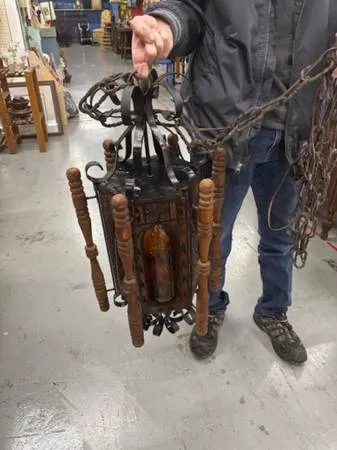 In booth 15 at Lawrence Antique Mall - Questions - Bill - 785-221-2643 - Offering a rare Large Vintage Mediterranean style swag lamp - It is in really good condition and works - It measures 30 tall x 9 in diameter - priced considerably lower than internet prices - will sell fast at only $89.00