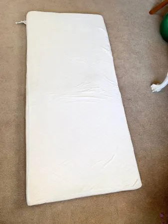 Foldable, portable and space saver good quality twin size foam mattress, cover with 3 side zipper. 3 thick, use often for guest bed, comping or RVS. Floor sleeping temporary bedding. 100 Urethane foam. Cover is 100 polyester. From smoke and pet free home. Call: 619-569-9995.