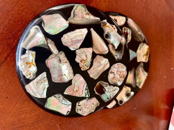 4 diameter. Pair vintage lucite abal 1 shell souvenirs trivets mid century. Price: $50 for both. Located Murrieta by Los Alamos rd and Hancock. Call: 619-569-9995.