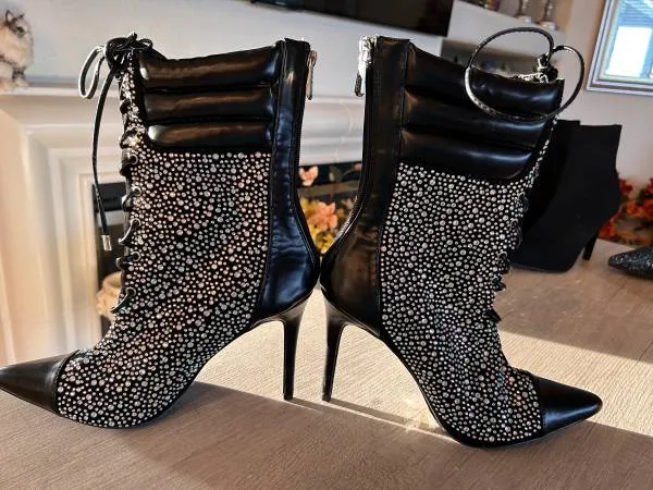 Size 9 medium. Gorgeous rhinest 1 heel ankle booties available. In perfect new condition. Call: 619-569-9995.