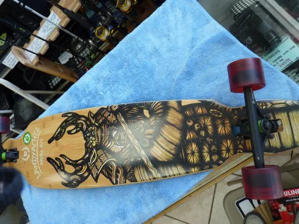 Light Use - Pre Owned - Landyachtz Long Board - Samurai Decals Battle Axe 37 Inch Long 10 inch wide - Large Polyurethane Wheels - Super Sticky Sandpaper Texture Board Top Well Made - Very few marks or nicks Can be seen and tested at location - I 95 Pembroke Exit 5/6 blocks East Asking 190 Cash or Card - Call 954-926-0151