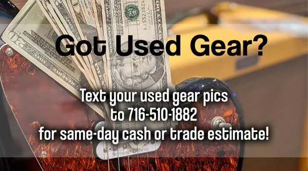 The Guitar Factory in Orchard Park pays you the most because we buy sell and trade the most used musical instruments and accessories in Western New York. We offer instant payment for your used Guitars, Amps, Keyboards , Pa Equipment , Effects, Lighting, Drums, Cymbals and Band Instruments We also give you more on trade if you are looking for new gear. We pay more because we are an independently owned local music store, not a corporate big box with strict guidelines on buying and trading which allows us the flexibility to pay you the most for your gear. TEXT PICTURES OF THE GEAR THAT YOU ARE INTERESTED IN SELLING OR TRADING IN TO: 716-510-1882 AND WE WILL GET BACK TO YOU THE SAME DAY WITH A QUOTE. NEW LOCATION - 5455 Webster Rd., Orchard Park, NY 14127 across from the Bills Stadium TAKE A TOUR OF OUR STORE AT: https://my.matterport.com/show/?m=vb 3 dazto 9 Wp COME CHECK OUT OUR NEW STATE OF THE ART LOCATION IN ORCHARD PARK, ACROSS FROM THE BILLS STADIUM THE GUITAR FACTORY 5455 WEBSTER RD Southwestern Blvd @ California Rd Across From Bills Stadium , enter via California Rd ORCHARD PARK NY 14127 7166770908 WWW.THE GUITAR FACTORY.COM