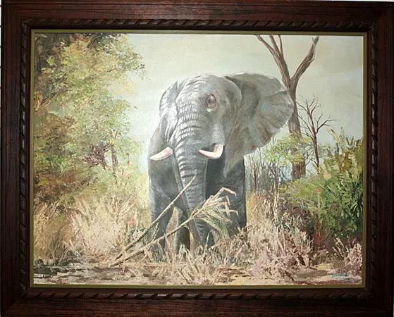 If You Love Elephants, This Is For You. Featured in a movie. A fabulous original oil painting set in a beautifully hand carved wood frame. Large Elephant Oil Painting 56 x 44 original oil on canvas .Signed Heinrick Cloete- 1970 In excellent condition. Look at all the pictures. Price $1500 Contact Ed -1- 323-899-2877