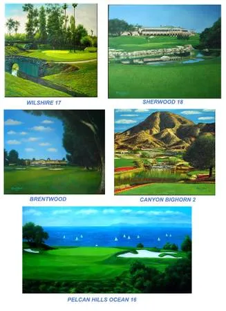 Golf Played In A Sea Of Green, with its beauty, its serenity, and its challenges. The Collection is of original oil paintings on canvas.NOT PRINTSSigned by the artist , excellent condition, app sizes 36 x 30. Prices $500 to $2500, For more details contact Edward 323-899-2877 Plenty of references. Custom special paintings & sculptures can be created for you.