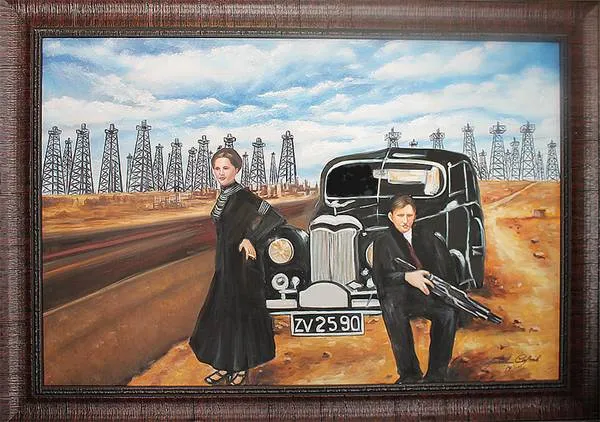 BONNIE & CLYDE IN TEXAS Oil Fields.. Over 10,000 people showed up for their funeral. The painting is an original oil on canvasnot a print but a piece of art. Great conversation piece Its what they looked. Framed – 36 x 24 – signed - ON SALE $1500 was $2500 Can do PayPal, payments- plenty of references Edward 323-899-2877