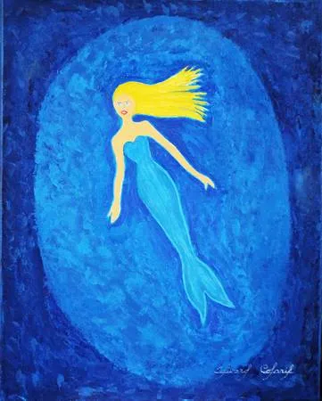 Mermaid Rising In Blue. Mermaids have had a mystical interest in art for centuries. Shakespeare 1540, wrote about them. This a dreamy painting of a Mermaid rising in mixed blue waters. Original oil painting on canvas, Size 20 x 16, stretched, signed, condition: New, SUPER GREAT PRICE $390 Contact Eddy 323-899-2877 We can use PayPal