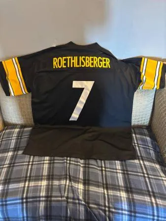 Up for sale is a NFL Ben Roethlisberger Pittsburgh Steelers Women’s XL Black Jersey in Good Condition. $40 takes it. It is located in Lyndhurst, NJ. Call me at 862-202-4944 if interested.