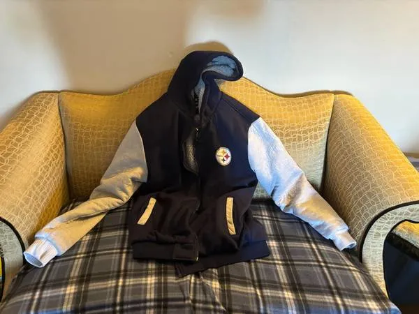 Up for sale is a Pittsburgh Steelers Women’s XL Zip-Up Hoodie in Good Condition. $40 takes it. It is located in Lyndhurst, NJ. Call me at 862-202-4944 if interested.