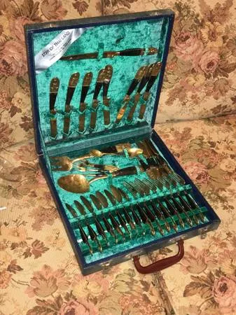 Up for sale is a Vintage 1950 s Siam Buddha Thailand Bronze Brass Flatware - 29 Piece Set in Good Condition for its age. Perfect of Any Collector of Vintage Flatware and Thailand’s Culture as Well as Anything to Do with Buddha. $80 takes it. The set is located in Fair Lawn, NJ. *Sold As Is/No Returns*. Call me at 862-202-4944 if interested.
