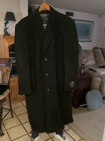 Men’s Vintage New/Never Worn Silver Cloud Black/ 3/4 Length Cashmere Overcoat in 44 Medium for Sale for Only $100.00. If interested, please call 407-505-0562, leave a message, and I will immediately return your call. Thank you and have a nice day.