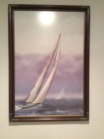 FOR SALE. YES STILL AVAILABLE Beautiful Large Sailboat Picture with Wood Frame and Brass Accent Corners 27-1/2 x 39-1/2 I purchased this picture to hang in pop out area going down the stairs so no direct sunlight on it. $100 Original owner. From a pet free and smoke free and temperature controlled home Serious inquiries only please. CALL OR 540-947-1631