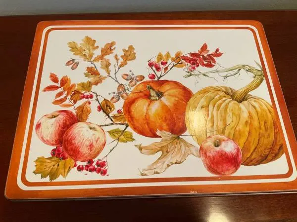 FOR SALE Set of 2 Williams-Sonoma Pumpkin Hardcore Placemats. Paid $12.95 each Brand new with price tag original owner. Purchased at a Williams and Sonoma store. From a pet free and smoke free and temperature controlled home Serious inquiries only please. Call or text 540-947-1631.